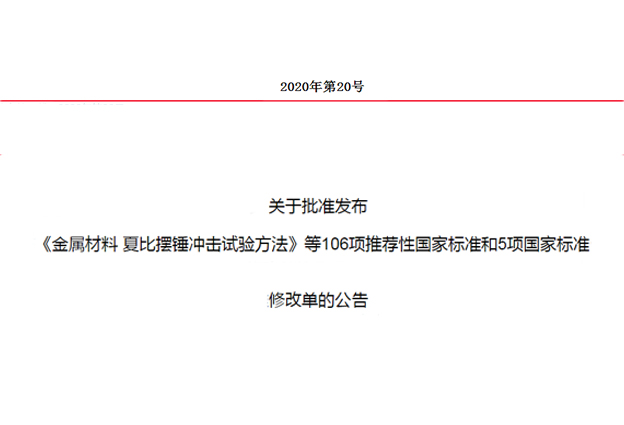 近日,國家市場監(jiān)督管理局(國家標(biāo)準(zhǔn)化管理委員會)批準(zhǔn)《金屬材料 夏比擺錘沖擊試驗方法》等106項推薦性國家標(biāo)準(zhǔn)和5項國家標(biāo)準(zhǔn)修改單,并予以公布。多項標(biāo)準(zhǔn)涉及多項化學(xué)分析方法。