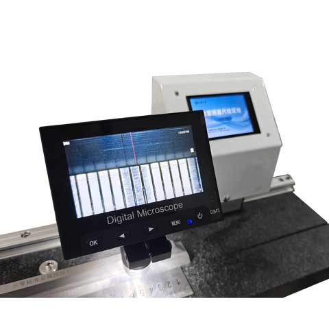 PTTC-GZ3型數(shù)顯式鋼直尺檢定裝置是由我司自主研發(fā)的,嚴格按照JJG1-1999《鋼直尺》計量檢定規(guī)程要求設計制作的。該檢定臺臺面采用優(yōu)質花崗巖作為工作平臺,平臺工作平面按照 0級平尺要求制作。在主工作臺與可升降輔助工作臺上方,設計了內(nèi)含高精度位移傳感器的數(shù)顯小車和放大倍數(shù)1000倍的電子顯微鏡,不僅可以使測量數(shù)據(jù)更加精準直觀,使用也更方便。