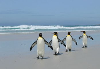 它們在雪地上搖搖擺擺地排隊行進(jìn),長達(dá)幾百公里的危險長征要走兩三個月。到達(dá)目的地,它們組成一對對“夫妻”,交歡產(chǎn)卵。生下的企鵝蛋先由“媽媽”孵化,冰雪覆蓋的原野上沒有任何食物,一段時間后,“媽媽”們將懷中的小寶貝交給“爸爸”,回到海洋去補充食物,以便回來哺育將要出生的小企鵝。