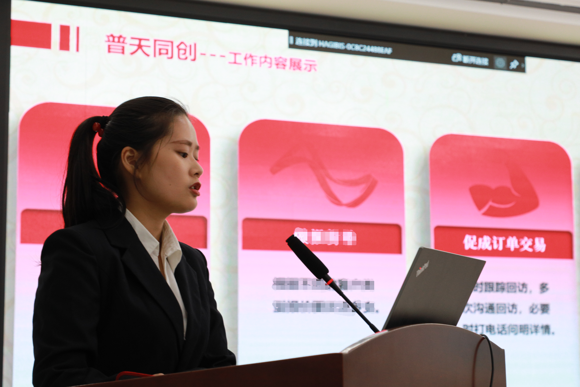 最后進(jìn)行分享的是有著豐富經(jīng)驗(yàn)的業(yè)務(wù)凡永菲,指出機(jī)會往往會喬裝成麻煩讓人無法抓住,在躲避這些“麻煩”的時(shí)候我們也就錯失了機(jī)遇,提出員工應(yīng)跟隨公司腳步,循序漸進(jìn),邁步走向美好的前景。