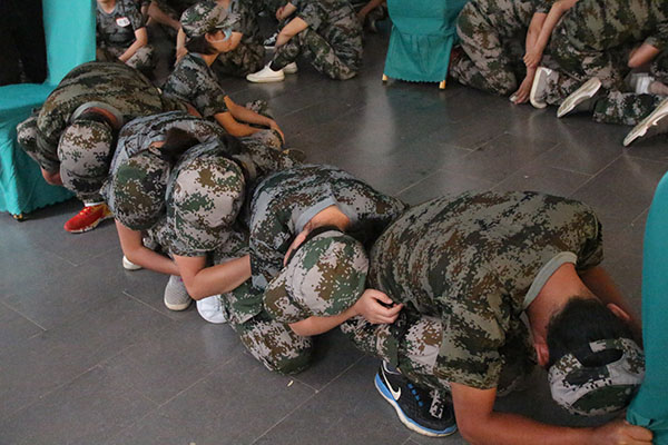 眾志成城”。所有隊員在最短的時間內完成任務,同時坐下,同時起立。